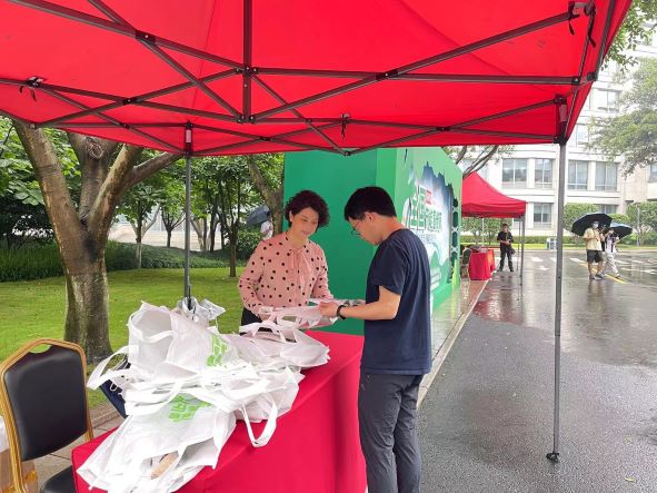 伴隨著蒙蒙細(xì)雨的早晨,在溫州銀泰百貨中心廣場(chǎng)活動(dòng)現(xiàn)場(chǎng)各單位通過(guò)展板、橫幅、宣傳冊(cè)、掃碼答題等方式向廣大居民群眾傳播節(jié)能降碳和綠色發(fā)展理念,倡導(dǎo)綠色低碳生活方式,引導(dǎo)廣大市民養(yǎng)成綠色低碳生活方式。工業(yè)院組織10名志愿者在場(chǎng)向市民普及節(jié)能小常識(shí),幫助市民解答節(jié)能方面的日常問(wèn)題。上午11點(diǎn),工業(yè)院一部分志愿者又馬不停蹄的趕往位于溫州市人民政府大院內(nèi)的節(jié)能宣傳活動(dòng)場(chǎng),在機(jī)關(guān)大院內(nèi)又掀起一股節(jié)能宣傳的熱潮。