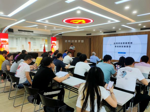 黨課內容主要圍繞項目管理在科學層面和哲學層面的理解,新發(fā)展理念的內容,以及如何運用項目管理思想來貫徹新發(fā)展理念來闡述的。吳家強指出項目科學層面包括項目的相關概念、組織影響、項目生命周期、項目管理過程和知識領域,哲學層面是從項目管理思想延伸至如何構建企業(yè)的管理和發(fā)展。要從戰(zhàn)略、運營、人力資源的管理上,以及企業(yè)文化、數(shù)字化建設上做好工作去推動企業(yè)的發(fā)展。有效的項目管理思想能提升企業(yè)的管理效率,因此要運用好項目管理思想,以新發(fā)展理念引領企業(yè)的高質量發(fā)展。